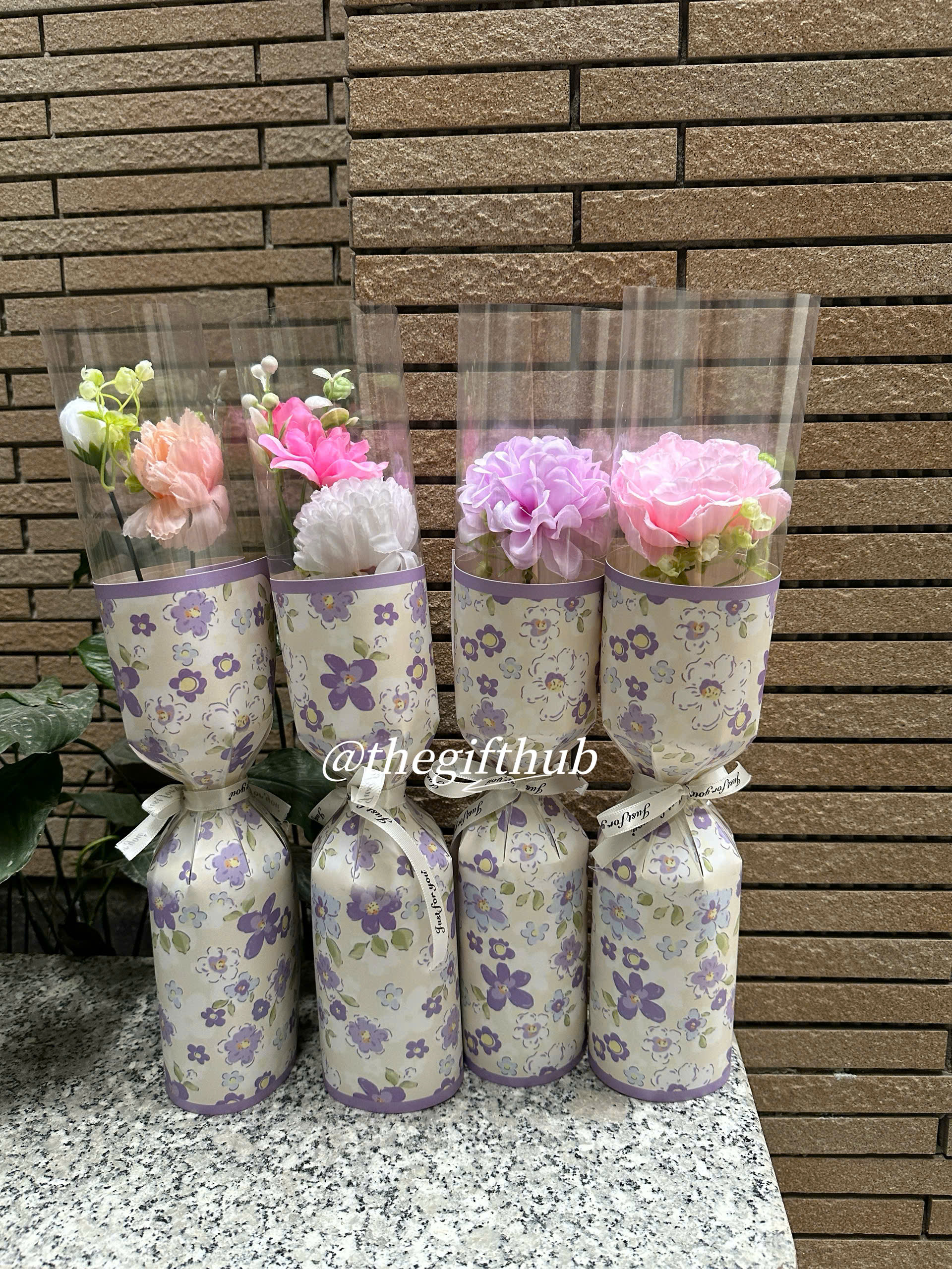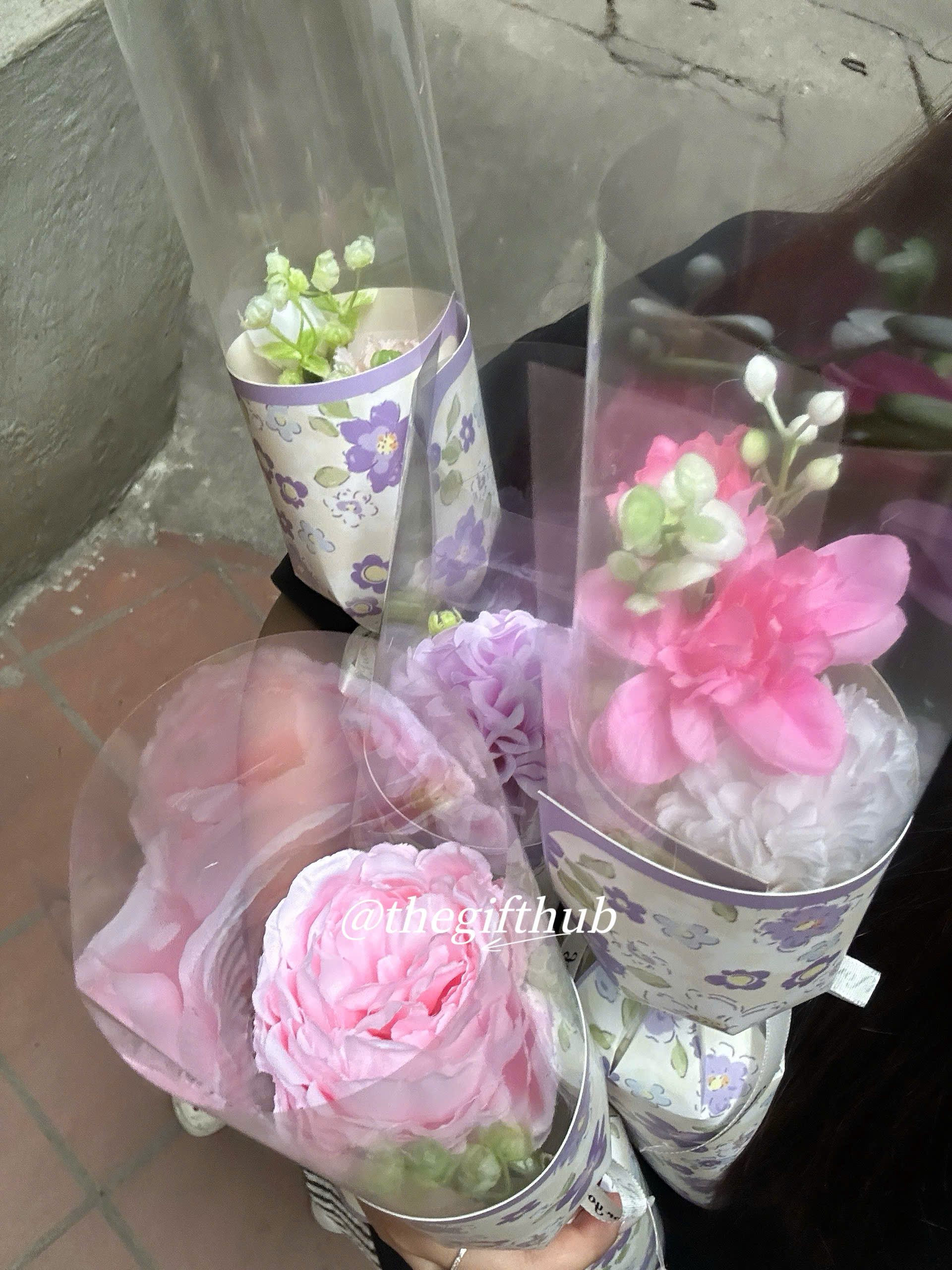 Ngoài ra, một bó hoa nhỏ thường được kết hợp với giấy gói xinh xắn, ruy băng hoặc nơ trang trí, tạo nên tổng thể hài hòa và đáng yêu.